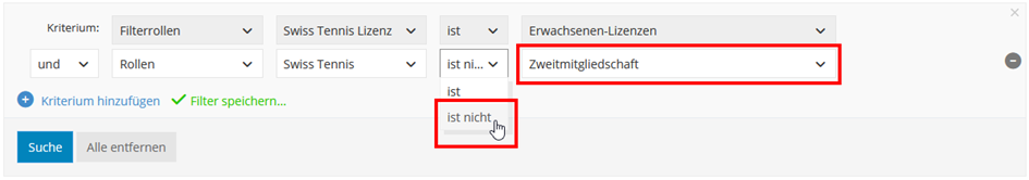 Klicken Sie in der Seitenleiste auf „Rollen filtern“ > „Swiss Tennis-Lizenzen“.