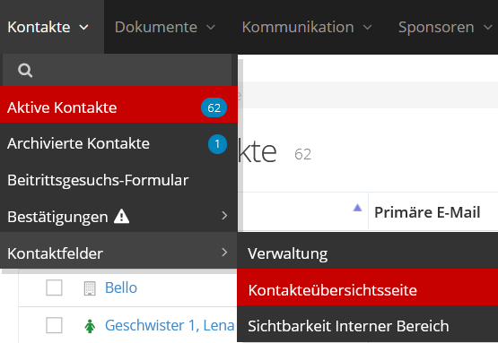 Wo kann ich die Kontaktübersichtsseite administrieren?