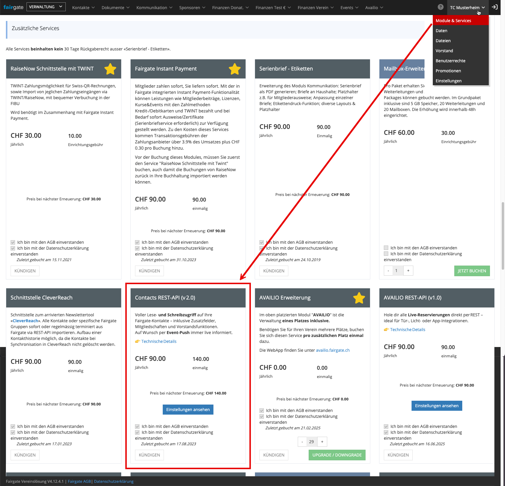 - Öffnen Sie das Menü Verwaltung › Module & Services.