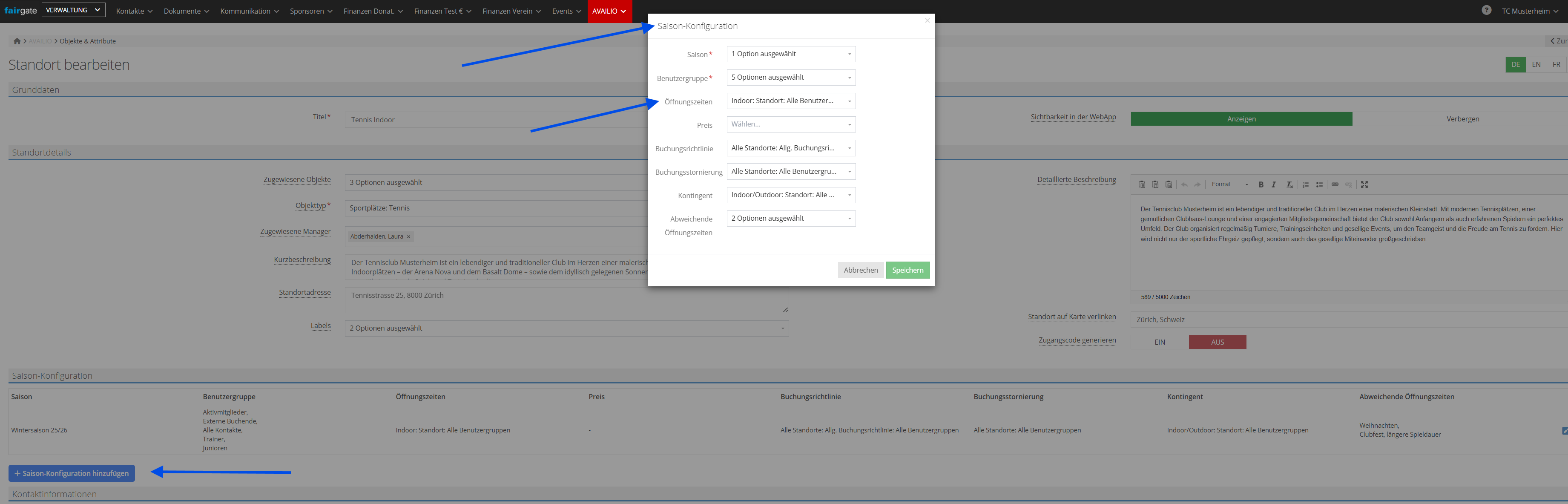 Sind Sie z.B eine kleine Organisation, bei welcher alle Tennisplätze die gleichen Öffnungszeiten haben? Standortebene.