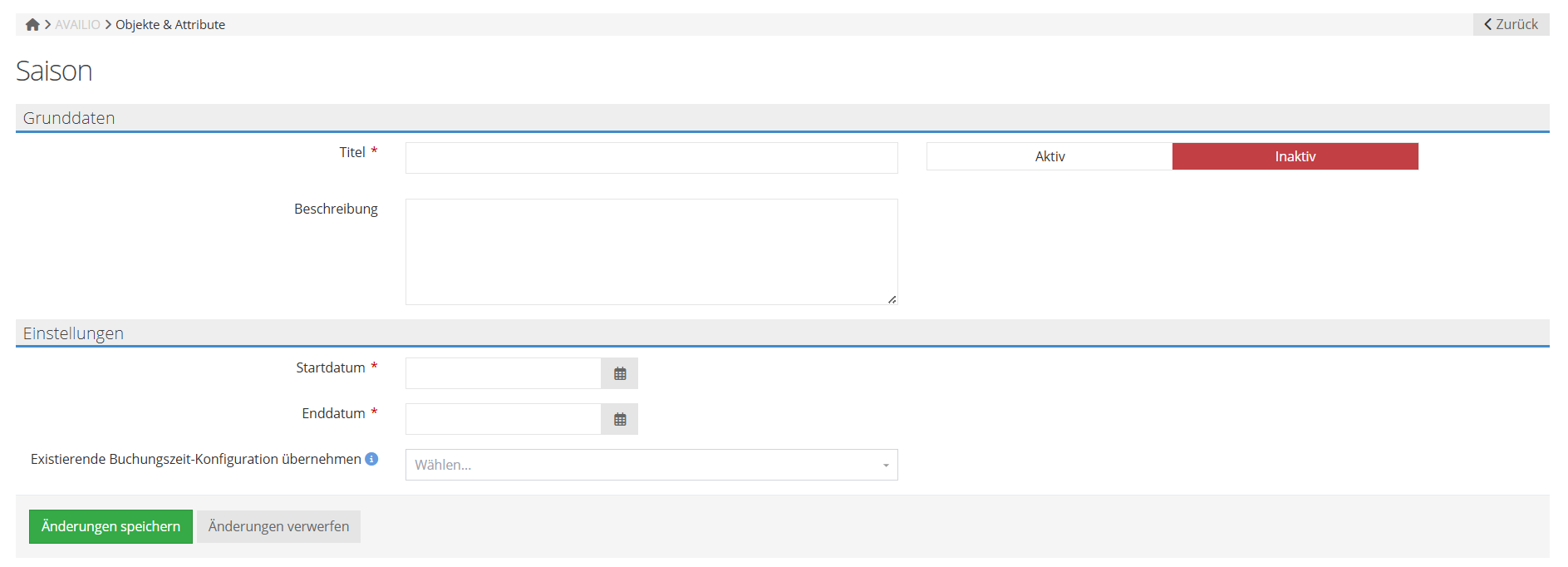 Ihre Saison können Sie unter AVAILIO > Objekte & Attribute > Saison definieren.